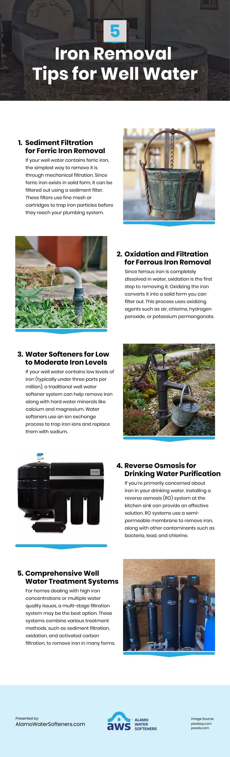 source: https://www.alamowatersofteners.com/5-ways-to-remove-iron-from-your-well-water/