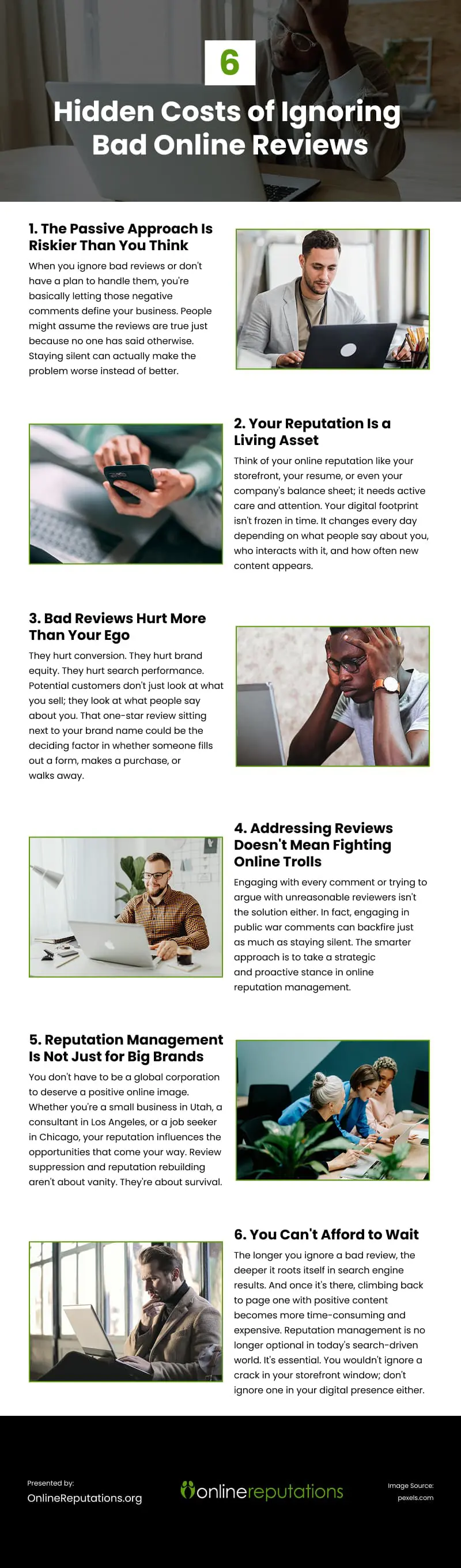 Negative reviews often become the first and most influential impression people have of your business, especially when they appear prominently in search results. Ignoring them or hoping they fade away is far riskier than many realize, because silence can imply agreement and allow negative narratives to define your brand. Your online reputation is a living asset that requires ongoing attention, much like a storefront or professional resume, and it evolves daily based on new content, engagement, and visibility. Bad reviews don’t just sting emotionally; they directly impact conversions, brand trust, and search performance, often determining whether a potential customer takes action or walks away. Effective reputation management isn’t about arguing with critics or engaging in public comment battles with trolls, which can easily backfire. Instead, it requires a strategic and proactive approach that addresses issues thoughtfully while enhancing positive visibility. This isn’t a concern reserved for large corporations alone. Small businesses, consultants, and even individual professionals are equally affected by what appears online under their name. The longer a negative review remains unaddressed, the more deeply it embeds itself in search results, making recovery harder and more costly. In today’s search-driven world, actively managing your digital presence is crucial for safeguarding your credibility, opportunities, and long-term growth.