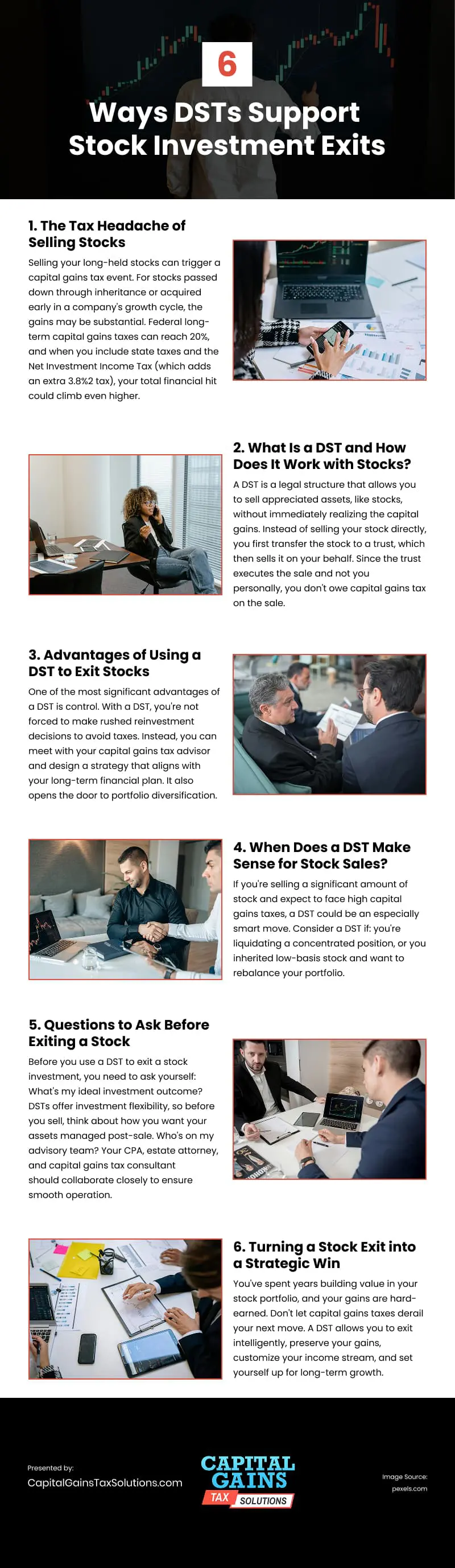 Selling long-held stock can come with a hefty tax bill, but a Deferred Sales Trust (DST) offers a way to defer those capital gains while maintaining flexibility and control. Instead of selling your stocks directly, you transfer them into a trust that sells on your behalf, meaning you don’t immediately trigger a taxable event. This approach can help you preserve more of your profits and reinvest strategically, rather than rushing into decisions to avoid taxes. A DST is beneficial if you’re exiting a large or concentrated position or managing inherited low-basis stock. It provides breathing room to diversify, plan for future income, and align with long-term goals. Before setting one up, meet with your advisory team—your CPA, estate attorney, and capital gains tax consultant—to ensure compliance and a smooth transition. With the right structure, a DST turns what could be a tax burden into a smart wealth-preservation strategy that supports lasting financial growth.