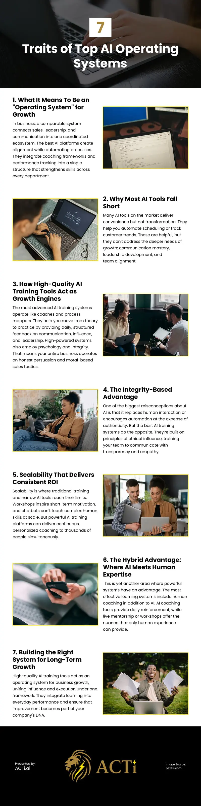 In today’s business landscape, leaders need a comprehensive system that integrates learning and execution rather than relying on disconnected tools that lead to unsynchronized data. High-quality AI tools are transforming how organizations operate by creating a cohesive ecosystem that aligns sales, leadership, and communication, automating processes while integrating coaching and performance tracking. Unlike many AI tools that offer convenience without addressing deeper growth needs such as communication mastery and leadership development, advanced AI training systems function like coaches, providing structured feedback on critical skills. These systems emphasize ethical influence, fostering transparent and empathetic communication among teams. Scalability is another significant advantage, allowing for continuous, personalized coaching that traditional training methods cannot match. The best AI training tools combine human expertise with AI capabilities, enhancing learning through daily reinforcement while offering the nuance that comes from real human interaction. Ultimately, high-quality AI training tools serve as an operating system for business growth, seamlessly integrating learning into everyday performance and embedding improvement into the organization’s core values.